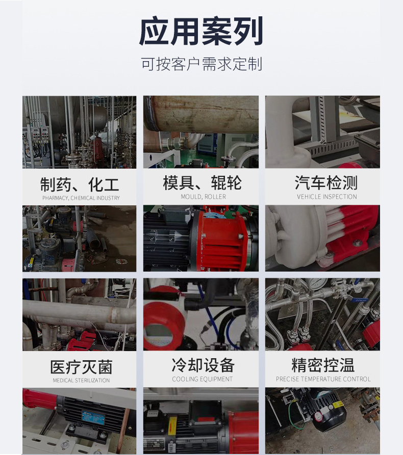 應用領域:空調系統、冷卻系統、工業清洗水處理(水的凈化)、水產養殖、施肥/計量、系統環境應用、(其他)許多專門特定用途